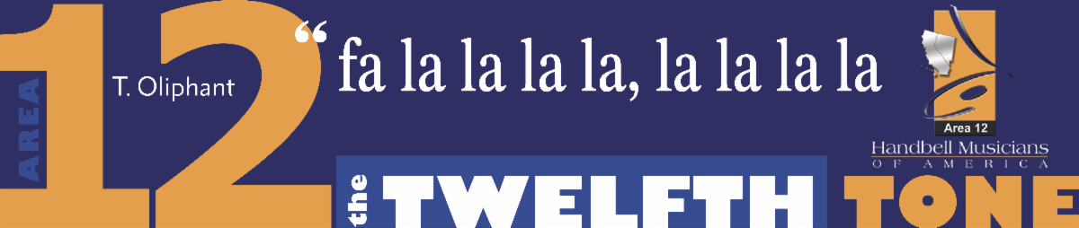 The Twelfth Tone is published on or around the first of each month, except July, by Area 12 of the Handbell Musicians of America (The Guild). The Guild is a non-profit organization dedicated to advancing the musical art of handbell/handchime ringing through education, community, and communication. The editor of this publication reserves the right to reject or modify copy.