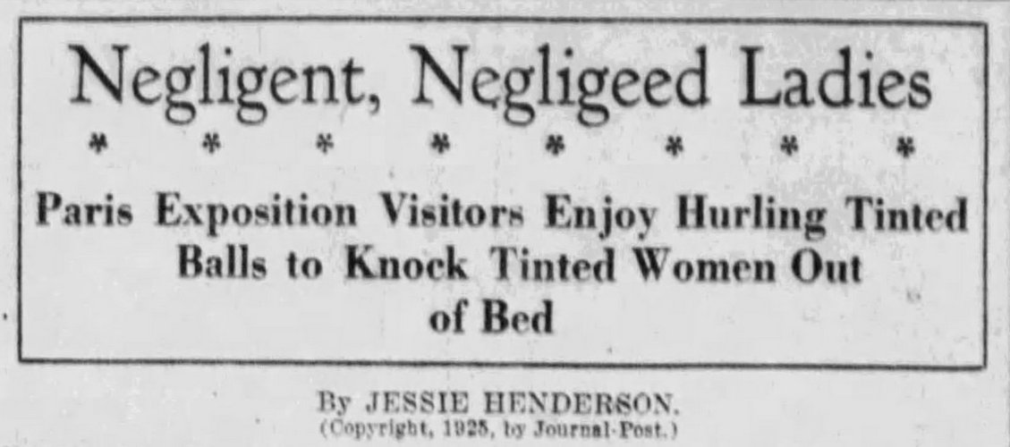 The article described that while the Expo was intended to show the world what was new and modern in the decorative arts, crowds at the Expo would gather around some of the more unusual attractions. Areas were devoted to merry-go-rounds, fireworks, beauty contests, belly dancers and shooting galleries.