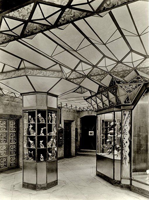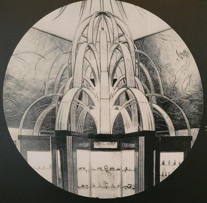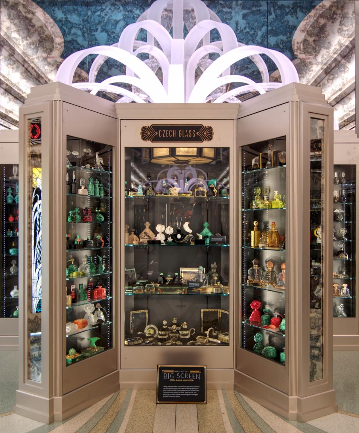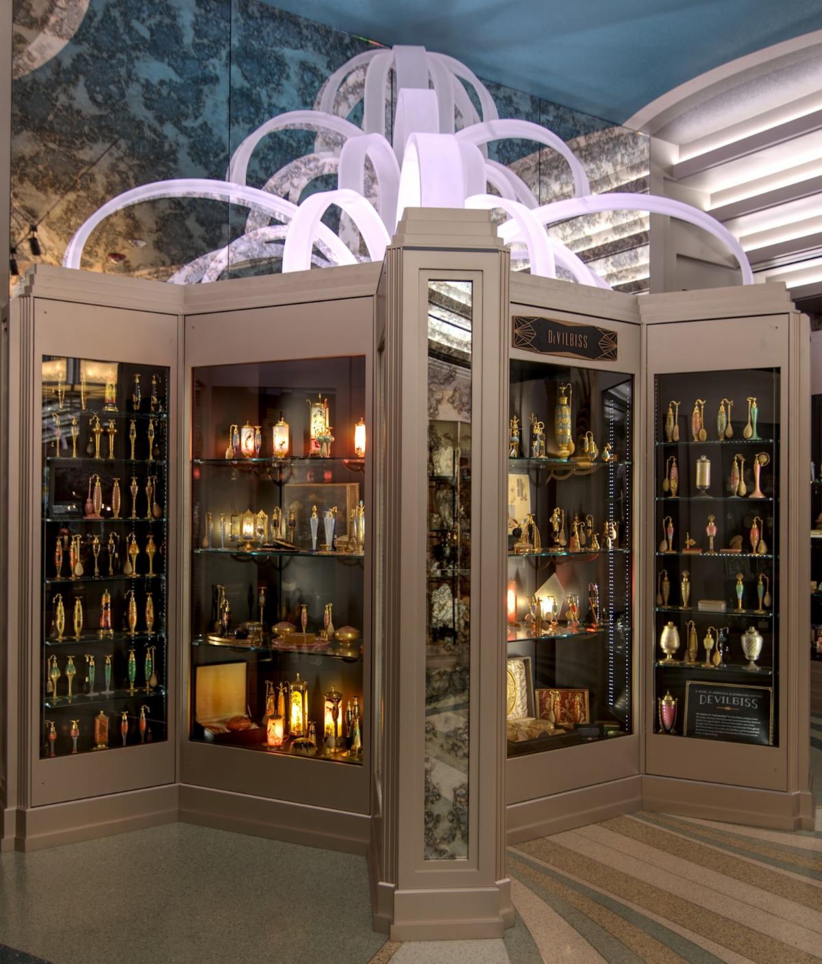 When designing Perfume Passage, we knew we wanted to include a Deco gallery inspired by the 1925 Expo. We also knew we wanted the design from the Expo's Rene Lalique pavilion to be highlighted in the room.