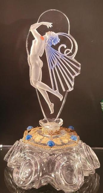 Deco style Czech perfume bottles and vanity items with chrome and other metal features were popular during the deco era and are part of the collection at Perfume Passage.