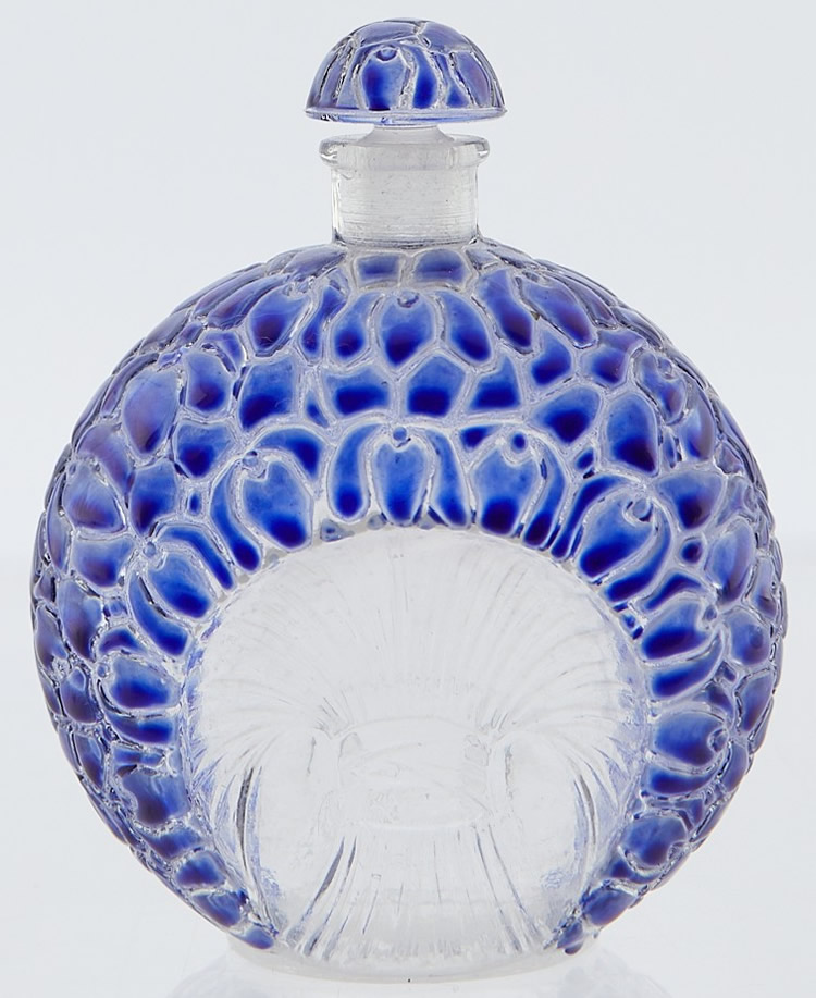A favorite Perfume Passage Lalique bottle is La Violette. The name and bottle decoration reflect the name of the Gabilla fragrance for which it was created in 1925.