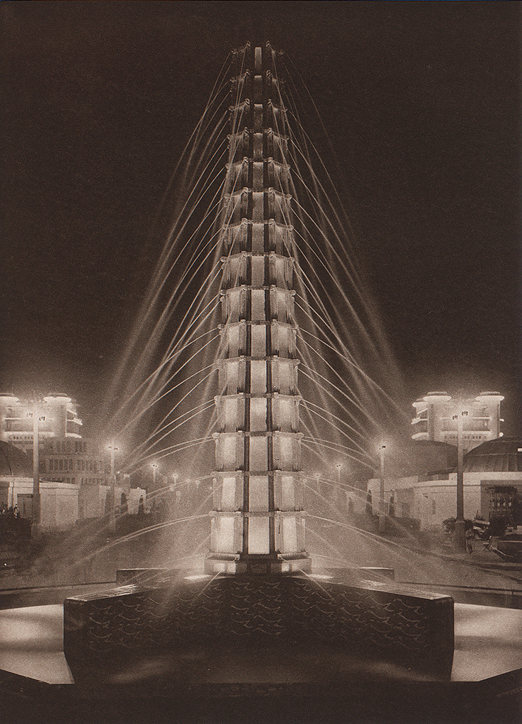And just inside the La Porte d’Honneur gate was a magnificent 45-foot fountain of illuminated glass designed by Rene Lalique (right). The deco designed crystal fountain, Les sources de France, was illuminated from within. It was considered an amazing feat of engineering, and it became one of the symbols of the Exposition.