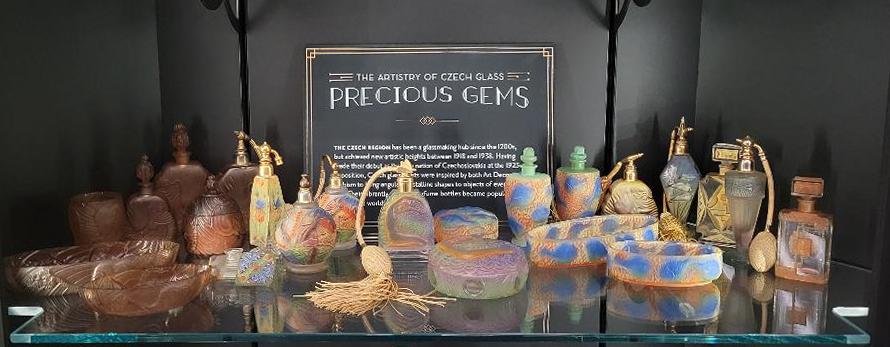 Works of art in their own right, the Czech perfume bottles on display in the Deco gallery demonstrate innovative designs and techniques that grew and evolved to reflect changing tastes, social norms and technical capabilities. These bottles tell a unique story of the early 20th century that continues to resonate with art and design today.