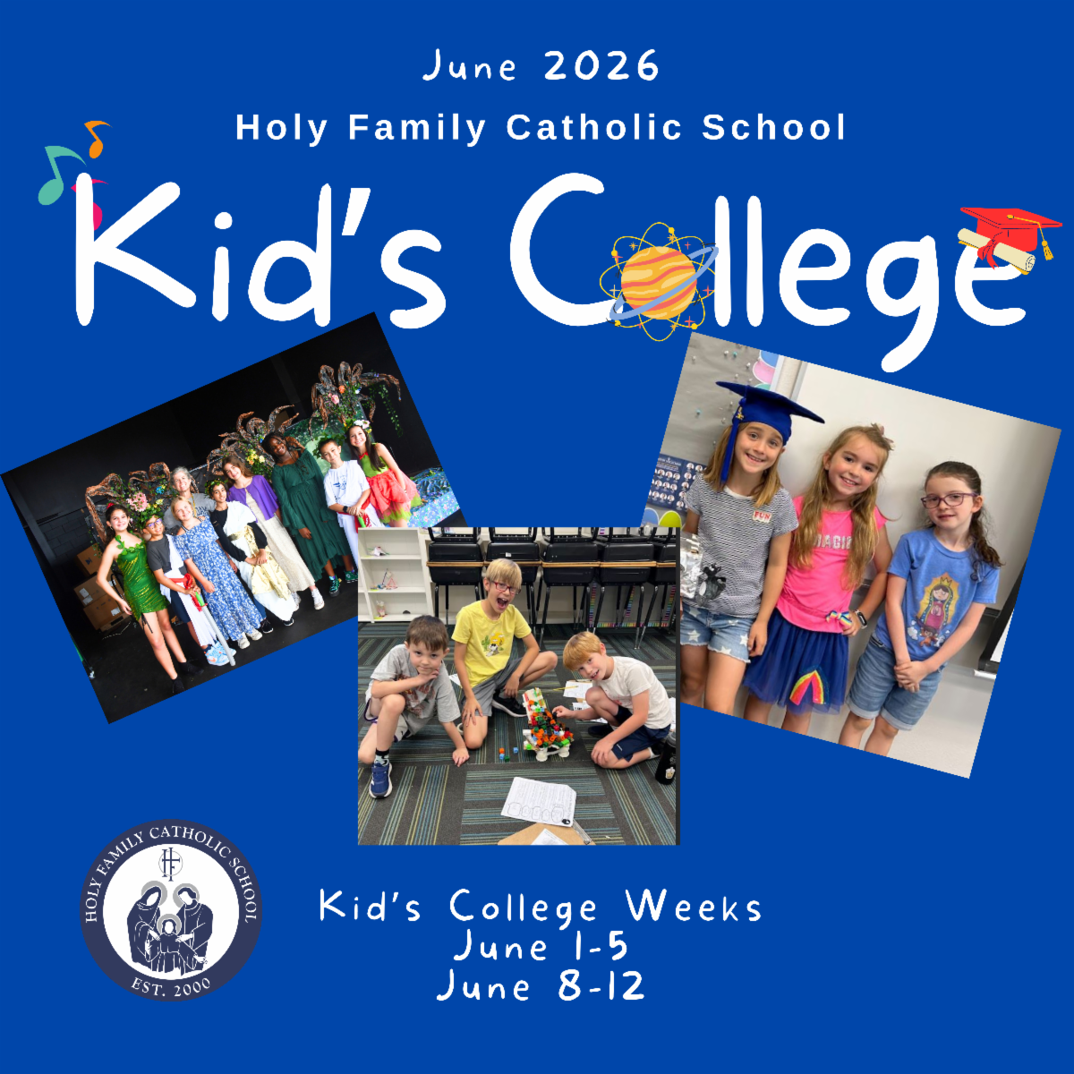 Students do not need to be enrolled at Holy Family, so feel free to invite a friend! Children can look forward to engaging sessions ranging from STEM and problem-solving to music and more. Additional details can be found in the e-newsletter. We hope to see you there!