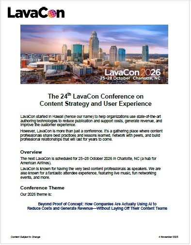 Do you have a best practice or lesson learned you can share with other content professionals? Be part of the the LavaCon 2026 Charlotte speaker lineup!