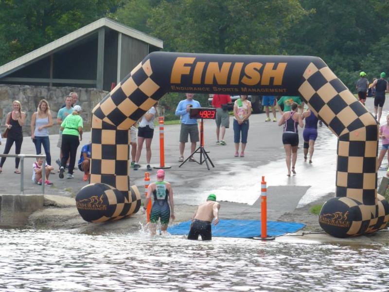 SWIM  START INFORMATION- Triathlon will start approximately 10 minutes after Duathlon to avoid bike/runner cross over at run turn around. The swim is a wave start from just outside the swim area at the dam end. The course will be a rectangular course finishing on the beach of the swim area. Keep buoys to your Right. Follow flagging/markings to transition area.