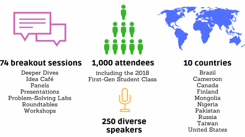 June 9th kicked off with nine various pre-conference sessions followed by the opening reception on the United Nations Sustainable Development Goals Dinner keynotes by Kevin Cassidy from the International Labour Organization and Shawnna Hoffman, International Blockchain expert from IBM, on how emerging technologies will level the playing field for populations who face economic challenges. Rocio Perez, Adrian Rosado and Dr. Melinda Cain provided the professional development for the 2018 class of the First-Gen student leaders.