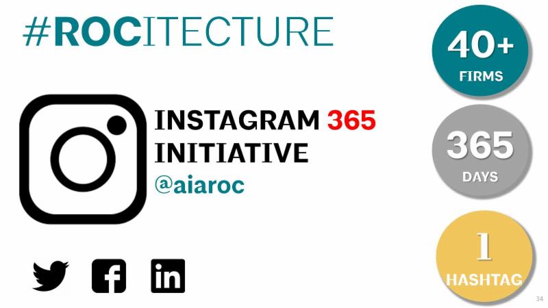 Our Centennial Instagram project is underway!  Follow us on Instagram at @aiaroc. The images are also being cross-posted on Facebook at AIA Rochester. Thanks to the efforts of GG Garzon, Associate AIA - our new Social Media Director, and the beautiful images from our member firms, our Instagram 365 Initiative has reached over 1.6K people on Facebook alone.