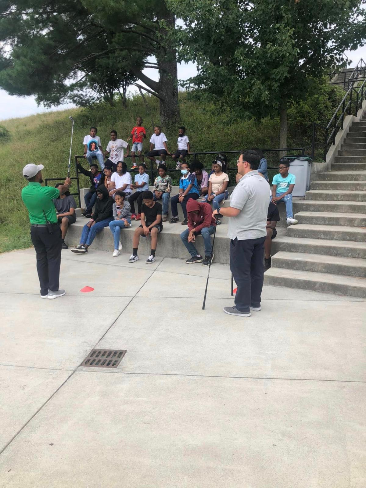 We partnered with Pastor Randall four years ago to bring a golf camp to the 5th district. It has been a great success, and the kids love to learn the game of golf and other life skills and forge new friendships. I always enjoy visiting and seeing the kids' progress, and I am always happy to help the other lefties with their swings!