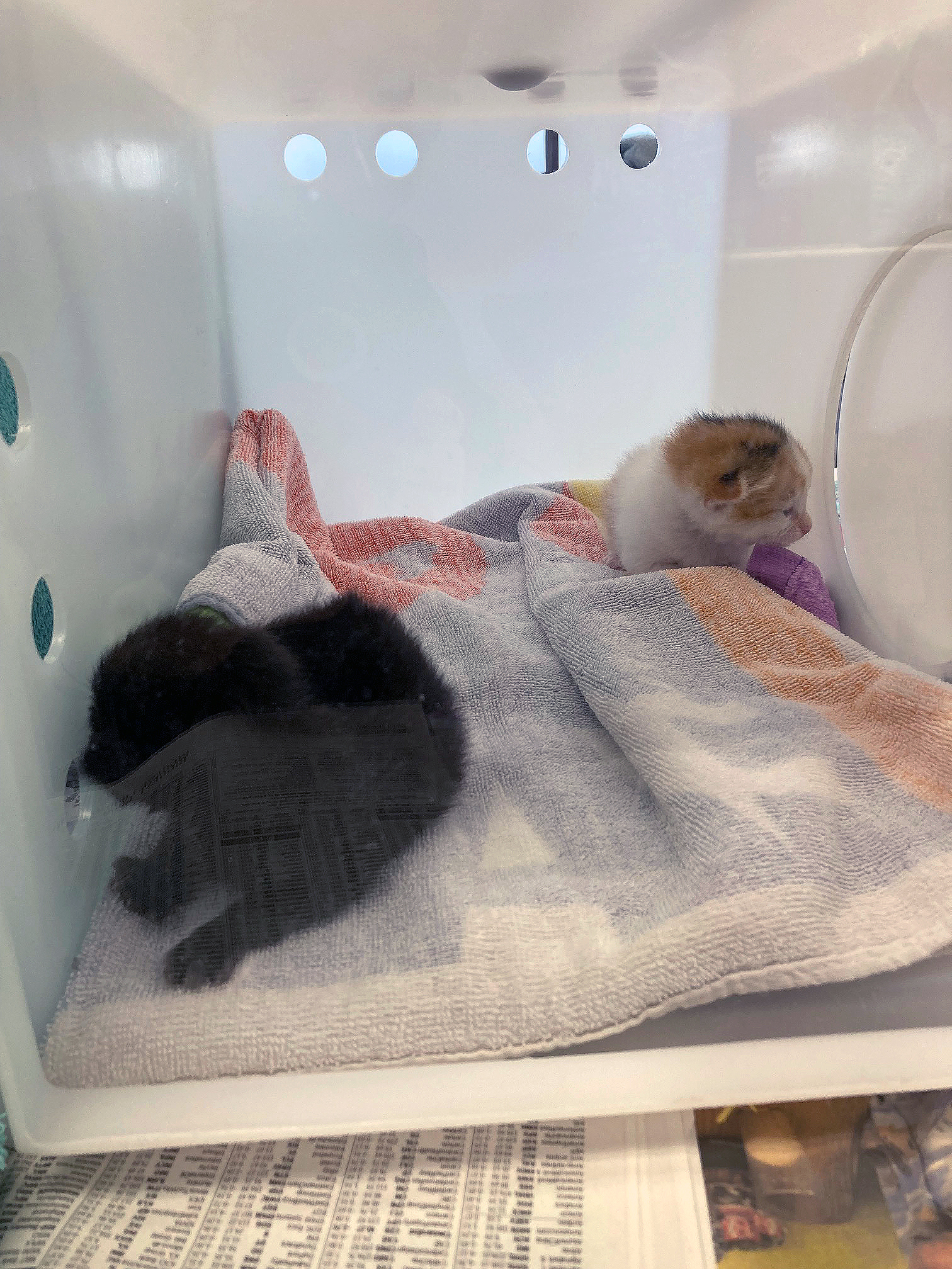 We are witness to cats from birth to adoption. Benny & Belinda came to us as bottle babies, just a few days old. Mom was trapped and rejoined them, and they all went to one of our mom and babies fosters. Three months later, happy and healthy kittens, they were adopted with another kitten, Marzipan, from that foster. We see success stories like this all the time!