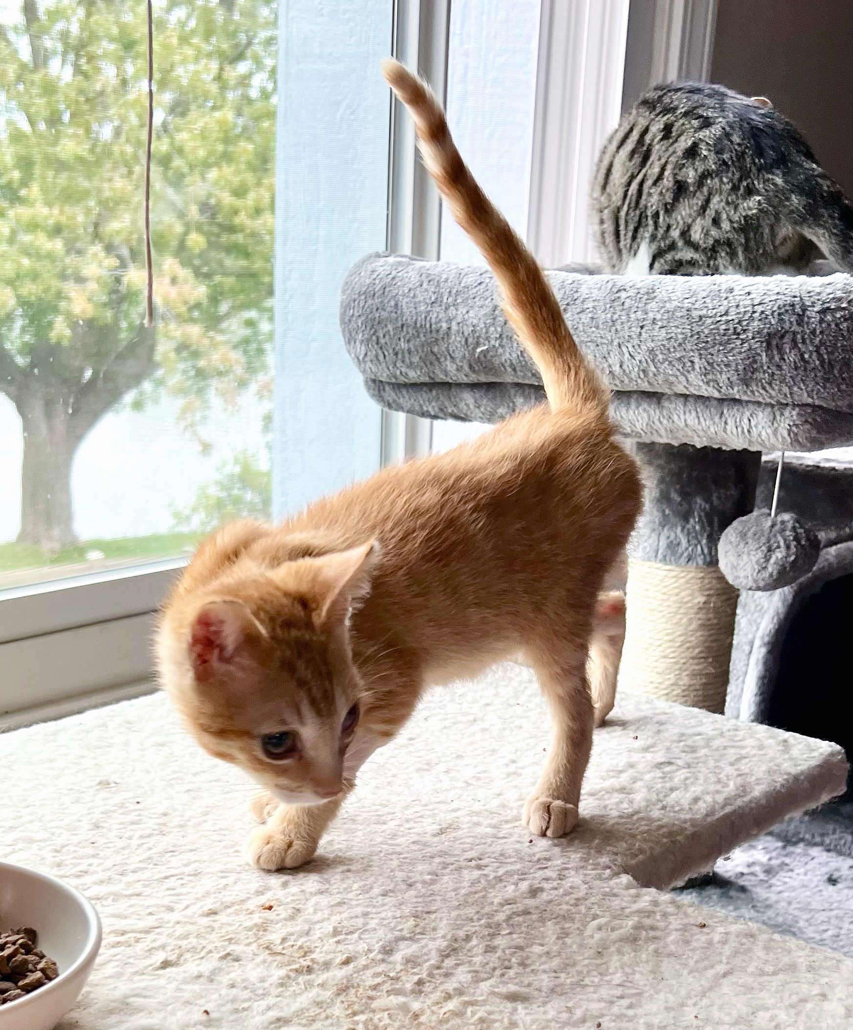 August 25, 2022 – Regina, a female orange tabby kitten who came in with Upper Respiratory, scheduled for endoscopy to find cause of blockage in sinuses.
