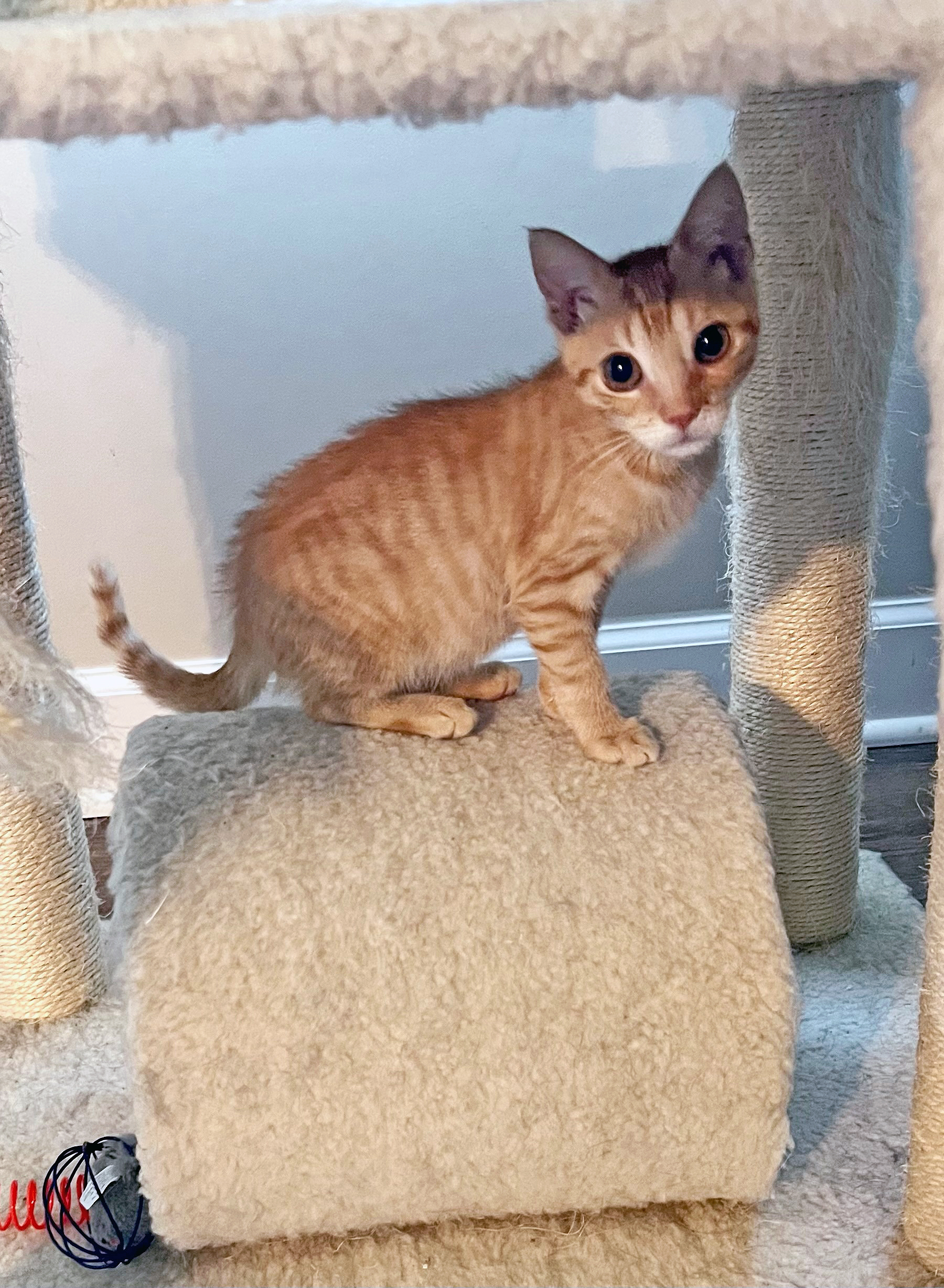 Jujube has a sweet and friendly demeanor. Once she gets to know you, she will be your best buddy. She loves to play and jump and explor her surroundings. She is easy to pick up, and when the timing is right for her, she is a true cuddle bug.
