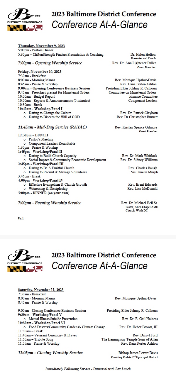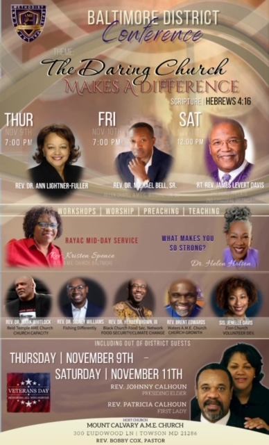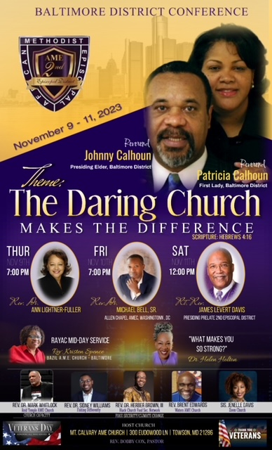 The Presiding Elder and I are excited about this year's District Conference at Mount Calvary. We trust that it will be uplifting and impactful. As well as, full of information and inspiration.