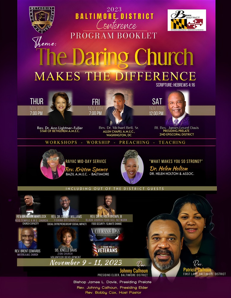 The Presiding Elder and I are excited about this year's District Conference at Mount Calvary. We trust that it will be uplifting and impactful. As well as, full of information and inspiration.
