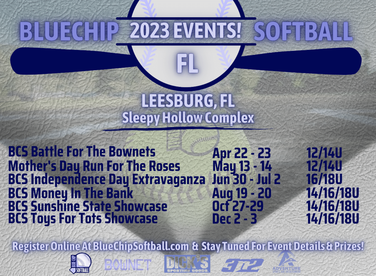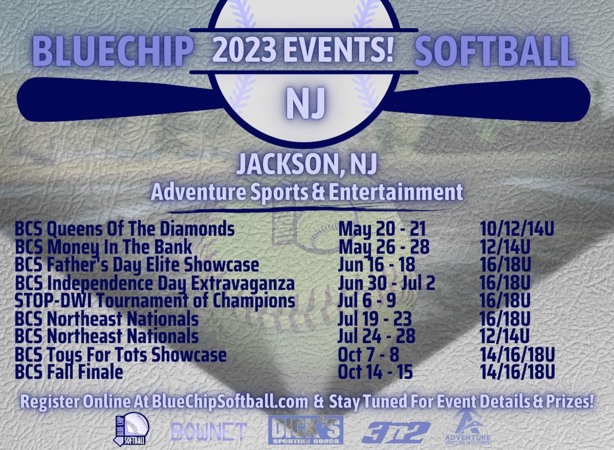 Bluechip Softball registration has begun for the 2023 season. As you see above, we have a few new events for the upcoming season being held at the Great Adventure Sports and Entertainment Complex in Jackson, NJ. The 2nd biggest news next to slate of tournaments coming to Great Adventure Sports and Entertainment is the the STOP-DWI Tournament of Champions will be held there for the 2023 season as well. The move for the tournament is due to the BAGSAI softball complex undergoing a facelift and will become a turf complex.