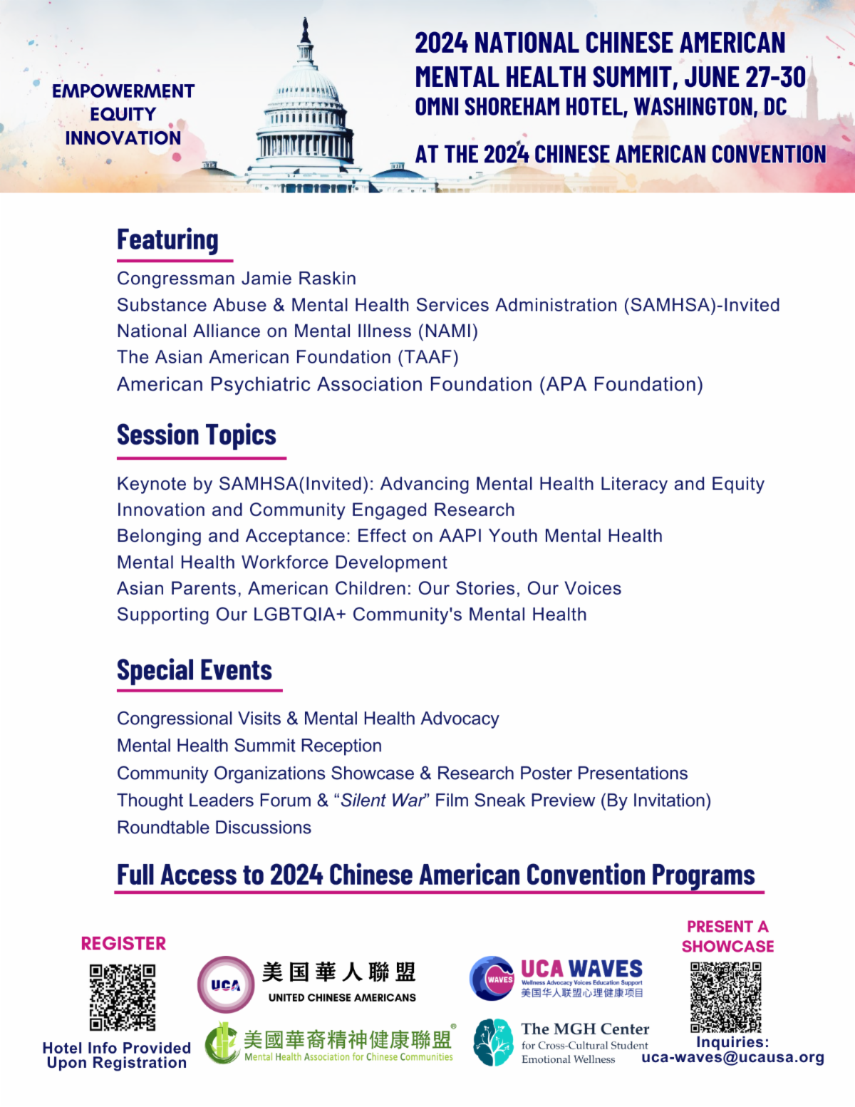 This is a rare opportunity for Chinese community organizations, AAPI youth groups, and Chinese mental health organizations to showcase their work, achievements, and events on a national platform, expanding their influence, attracting resources, and seeking growth.