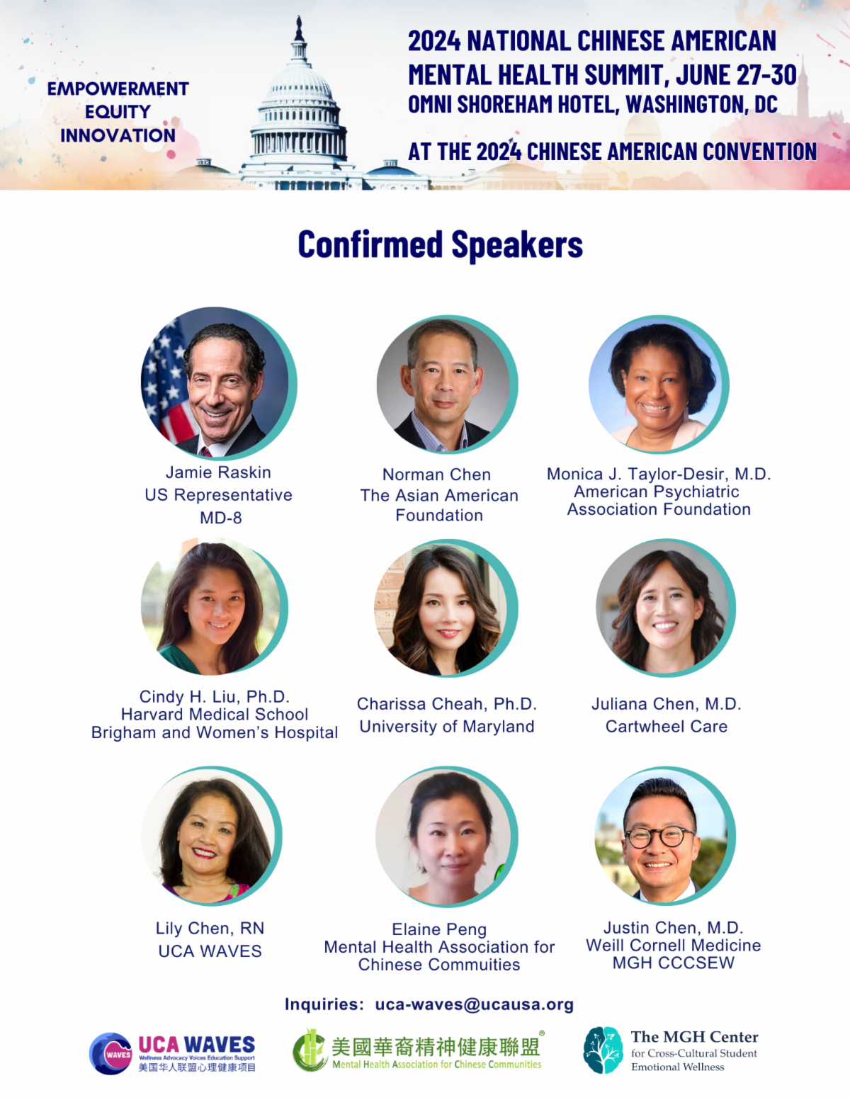 目前,除了美国华人联盟心理健康项目(UCA WAVES)外,已经确认将参加本届全国心理健康峰会的大型组织机构有: