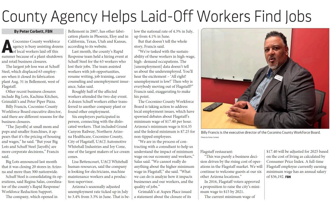 We are pleased to announce that the ARIZONA@WORK Coconino County Workforce Development Board Strategic Plan for 2025-2028 is now available for public review and comment. This plan outlines our strategic direction for workforce development initiatives in Coconino County, aligning with the Workforce Innovation and Opportunity Act (WIOA).