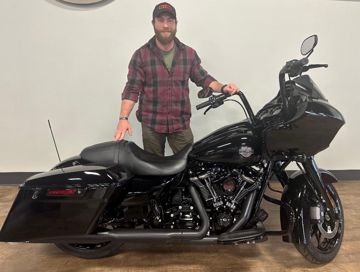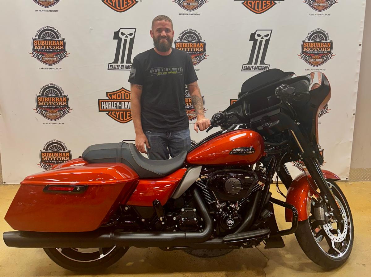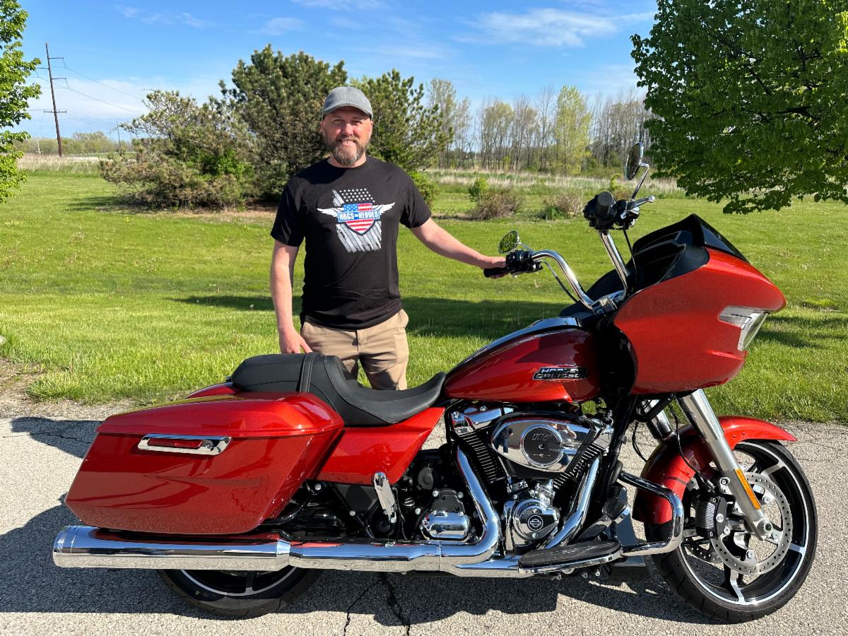 Having been bullied through school, Andy turned his pain into strength by joining the Marines. He excelled through boot camp and bought his first motorcycle to celebrate; then learned how to ride and how to use it to cope. In 2012, the Harrier Jet mechanic was recognized for his advanced capabilities and selected as a QRF Team Leader headed to Afghanistan. In 2013 he found himself moving through deadly villages and embedded terrain in search of weapon caches and terrorist activity; and every step of the way he pushed his fear and anxiety deep within. Andy returned home and to avoid thinking about what he’d been through, he continued his pattern of chasing achievements rather than addressing his brewing struggles. He set his sights on MARSOC, the Corps’ component for the U.S. Special Operations Command. Having been selected for the training opportunity, he rode his bike cross-country for the chance to make the cut. In his fourth month an injury crushed his dream and, four surgeries later, his plan to stay in the Marines. Depressed and directionally lost, he turned to drinking, isolated himself and moved from job to job. Riding was key to his identity and lifestyle; but when he took a job on an oil rig, Andy sold his bike believing he’d simply get another when he was done. Instead, he found love; and after marrying and starting a family, getting another bike wasn’t in their family plan. But because riding was still firmly planted in his heart and mind, Andy would borrow or rent the occasional bike to sort through the demons that still threatened his life. Hogs For Heroes felt that Andy’s ongoing healing would benefit from regaining wind therapy and we selected him to be our first Recipient of 2025. He found this beautiful 2023 Road Glide Special at Appleton Harley-Davidson and received his keys on April 26, 2025.