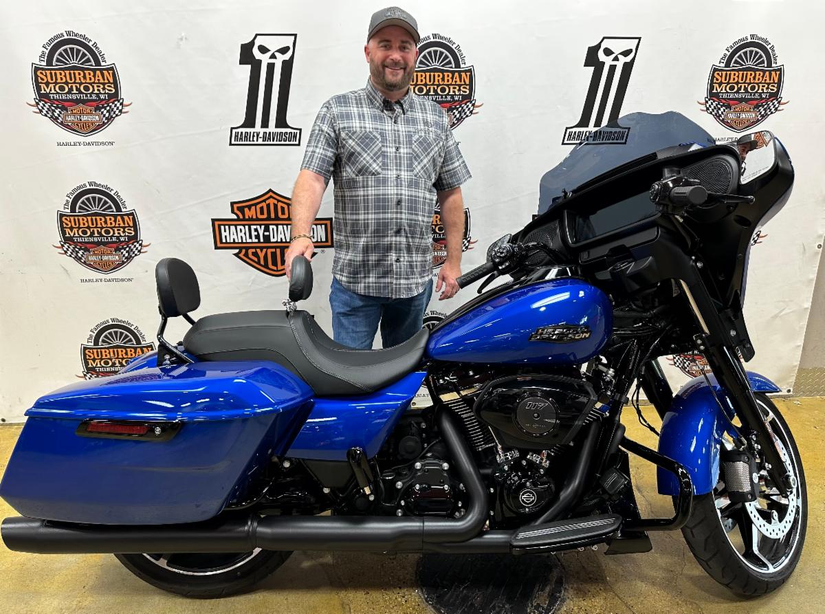 Dave Tellefsen grew up in a military family with generations of service; and it was all he wanted to do himself. He was a hard-charger who wanted in on the fight; and after two deployments to Iraq, he still wanted more. Dave went on to pursue advanced certifications, train others and deploy to non-combat areas; and after 22 years of active duty, Dave still questions if he did enough. The 22 years of wear and tear to his body, the ailments from burn pits, and the deep emotional scars of PTSD and survivors guilt certainly convey otherwise. While in service, Dave rode his first 12 years and sold his bike after starting their family. They'd planned for his next bike to be a retirement gift but were blessed with another child; and Dave put his dreams on hold. Dave is currently a CVSO for Fond du Lac County and spends his days advocating and caring for other Veterans. In addition, he spearheaded the campaign for a new and improved County Veterans Park to honor all he proudly calls family. And yet, this man still questions if he does enough. While our gift is not an award for service, Hogs For Heroes couldn't help but be impressed with his ongoing, difficult service and felt it was time someone advocate for Dave and support his healing. On the showroom floor of Harbor Town H-D, he found a 2024 Road Glide in Whiskey Fire, a color scheme similar to his first and only bike prior. Dave received his keys on Sunday, June 8, 2025.