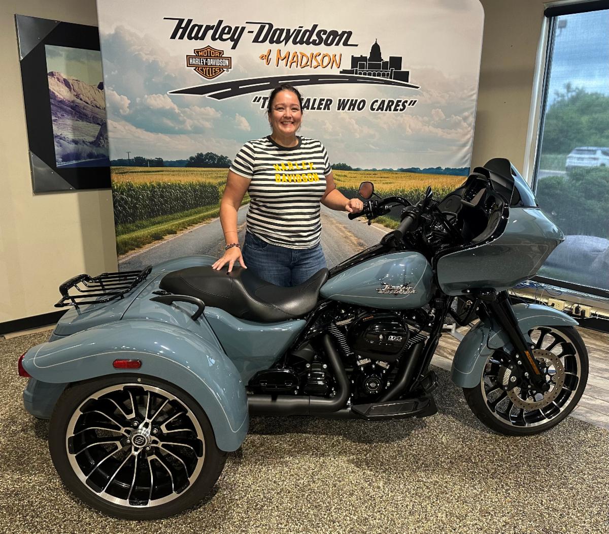 Staff Sergeant Tiffany Gorges joined the Army National Guard in May 2001. She was quickly activated to Fort Bragg for a year where she excelled, bought her first motorcycle, and earned a position in Airborne School. Tiffany loved everything about the military, including the trust and brotherhood. One day a “Brother" asked for her help and, while traveling together, he sexually assaulted her. Fearful and confused, she hid the ugly truth and built a foundation from which her PTSD grew. Months later Tiffany deployed with a Heavy Transport Company and in October, 2004, landed in Iraq for 17 months. She drove massive trucks in convoys, manned 50-cal turrets and was a Combat Lifesaver. She concealed her physical pains and mentally pushed the daily near-misses, violent death toll and horrific injuries she tended to, far back in her mind to stay focused. She returned stateside and hid everything behind a private mask, using her bike for release and drinking excessively to dilute the past. Six years later, the Staff Sergeant deployed to Afghanistan running gun trucks and leading others for a year. Once home, she again buried everything and was quickly engulfed in a sea of rage, acting out and drinking even more to temper her demons. It would be four years later, in the wake of more bad choices and lost relationships, that she finally sought care. And when the Army found out about her struggles with PTSD and the physical limitations of her injuries, a Medical Review Board granted retirement at 20 years of service. Tiffany has courageously moved miles in therapy, but regaining miles on the trike she needs isn’t a financial possibility. Hogs For Heroes believed our gift could help her stay on the healing path she’s created for herself. Tiffany’s trike was fully sponsored by Dane County's Fire Fighters Local 311 and the Professional Fire Fighters of Wisconsin after two golf outings for us. She received her keys on August 2, 2025 at Harley-Davidson of Madison, her hometown dealership where she found her love, "Bruce".