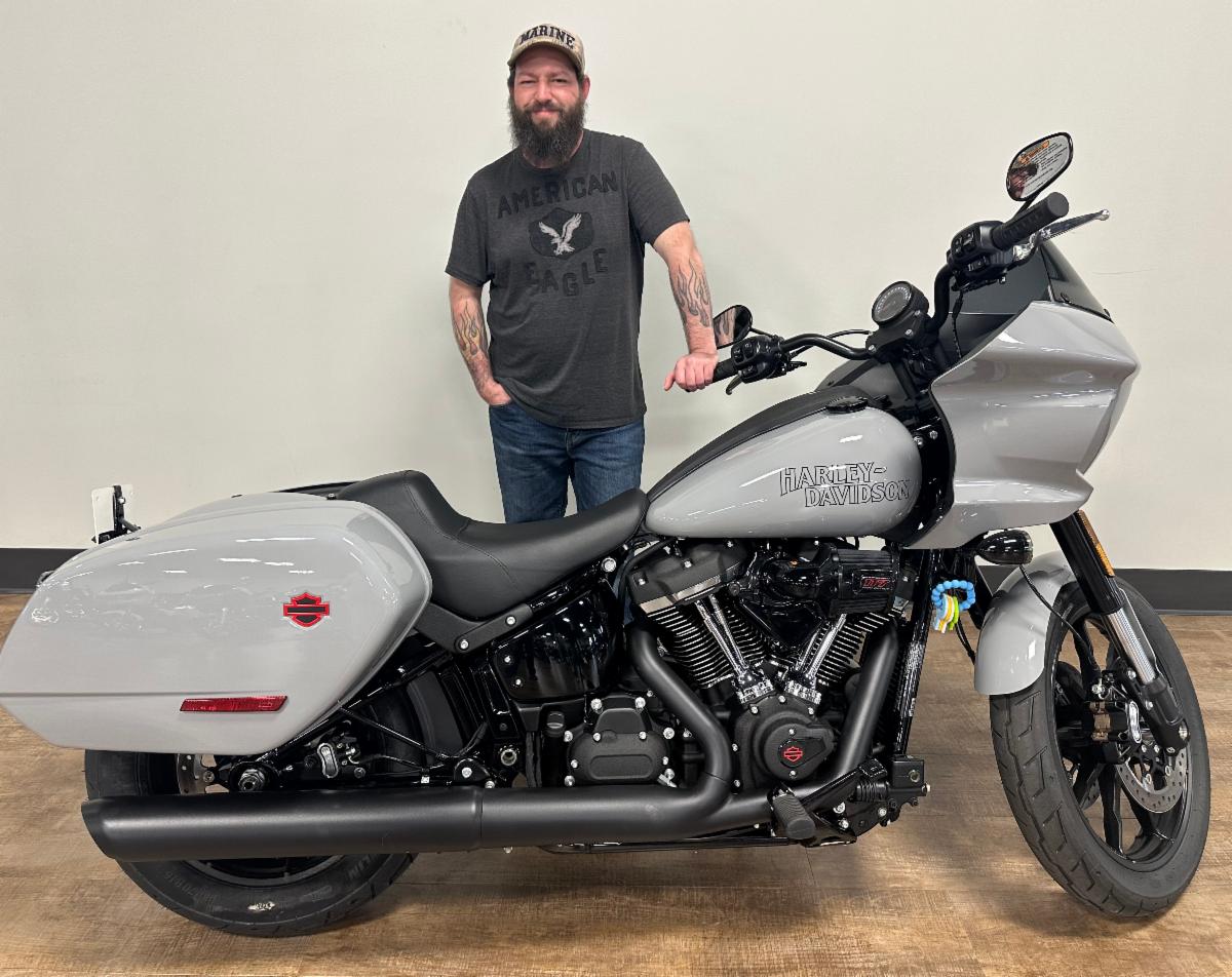 Dave joined the Marines as a junior in high school during peacetime, watched the 9/11 attack in class as a senior and landed in Fallujah, Iraq in January 2004 a year after graduating. A second year's deployment followed shortly thereafter to the same place. The worst years of OIF were 2004-2007, and Dave was there for two of those three; and he has the deep, personal PTSD scars to show for it. He has struggled on every level: drinking excessively to numb his pain, attempting suicide and moving in and out of treatment programs. In 2023 a friend loaned him a bike to help Dave reconnect with riding’s healing benefits…and it was an amazing summer for Dave’s growth. But when he handed the keys back, those dark clouds rolled back in. He rode some more in 2024, sealing his passion and need to ride, but affording his own bike was far out of reach. Although it'd been several years since he'd owned his own bike, through his application we heard what The Road did for him. Hogs For Heroes believed our healing tool could support this at-risk Veteran’s life and the rough road still ahead. Dave found the brand new 2025 H-D Low Rider GT at Appleton Harley-Davidson and received his keys on May 1, 2025, right after attaching his toy keys to his new ride.