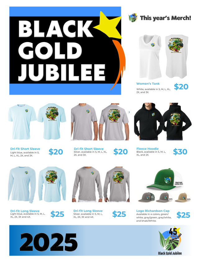 Held each April, the Jubilee honors its namesake, “Black Gold”—a tribute to the rich, fertile soil that has sustained our agricultural community for generations.