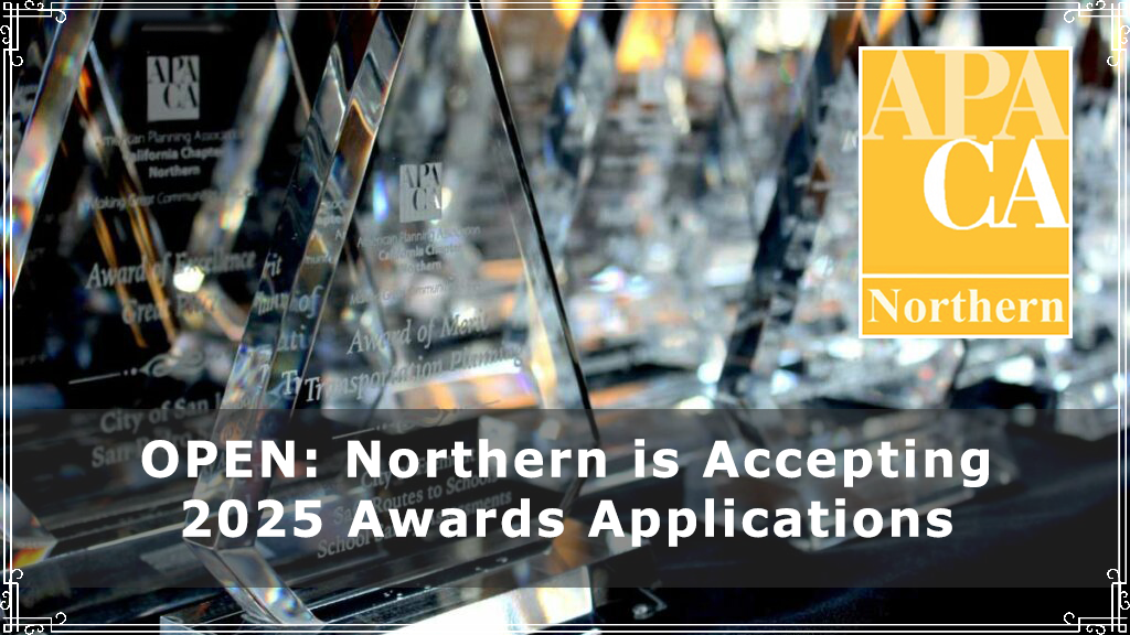 The Northern Awards Program recognizes outstanding efforts in planning and planning leadership. Each year, Northern bestows Planning Awards to honor innovative plans and projects, distinguished APA members, and lay contributors to planning and achievements throughout Northern. Often, Northern winners ascend to win awards at the State and National levels!
