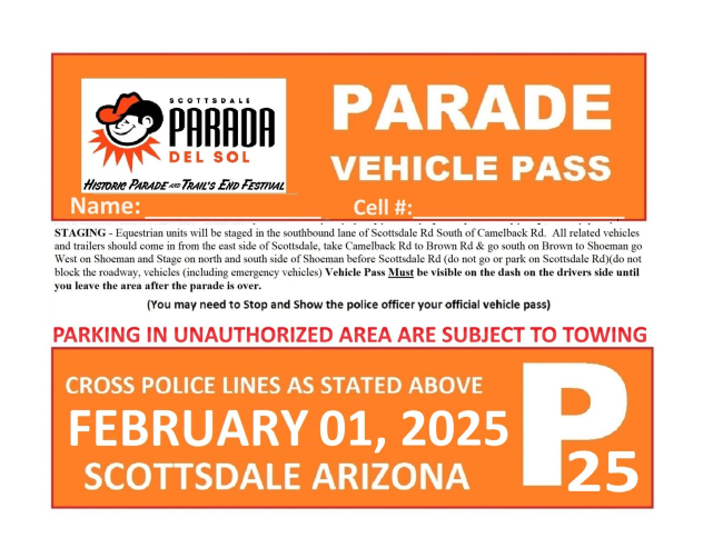 Post Parade: Meet at Loco Patron (4228 N. Scottsdale Road). Families are welcome to be at Loco Patron to watch you ride starting at 9 a.m.