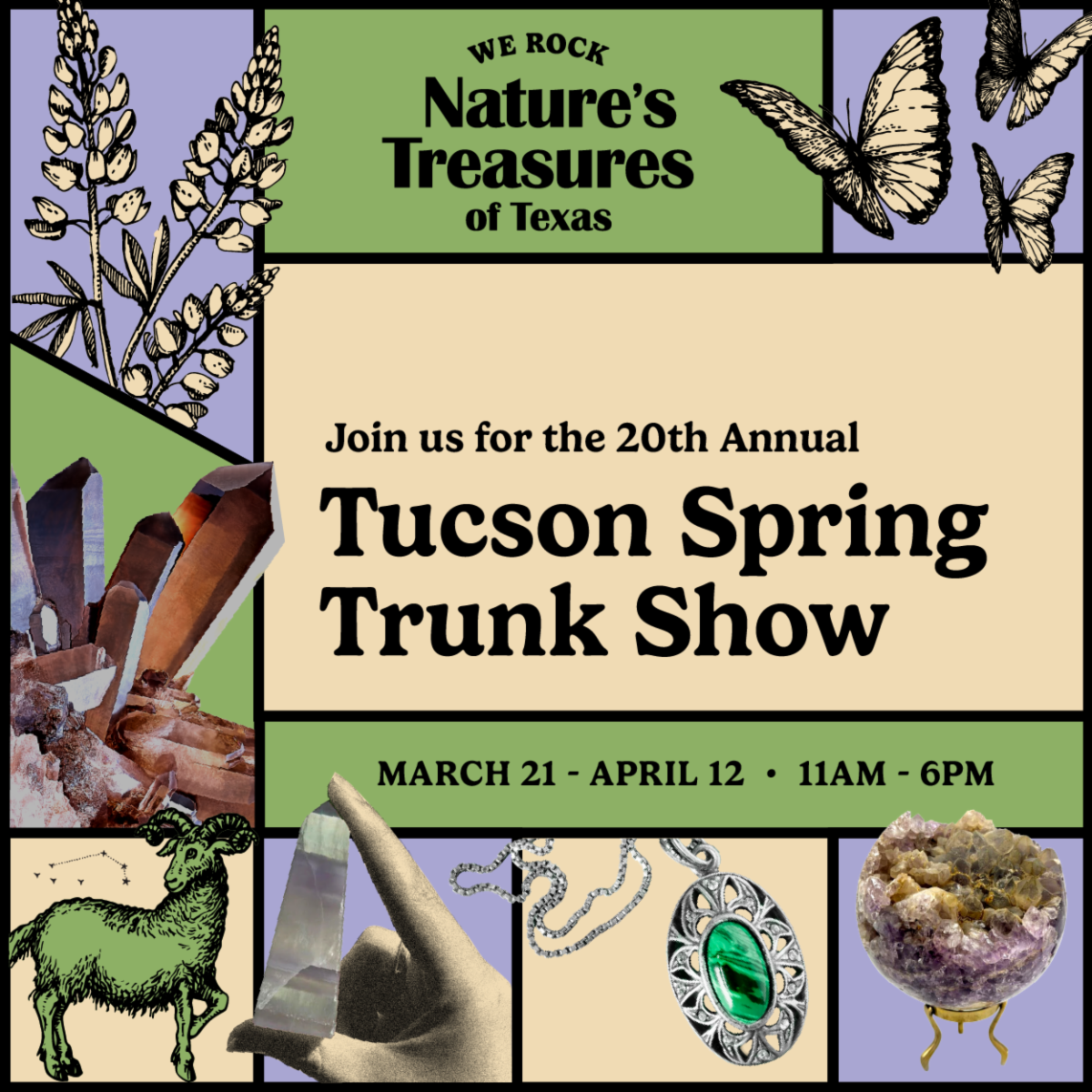 Fresh discoveries are arriving at Nature’s Treasures from Tucson’s International Gem, Mineral & Fossil Show. Whether you love jewelry, home decorating or collecting, you are bound to discover something new! Be sure to SUBSCRIBE to "All Sales & Special Events" to get our Trunk Show Preview highlighting some of our most exciting finds or click HERE to visit the EVENT PAGE!