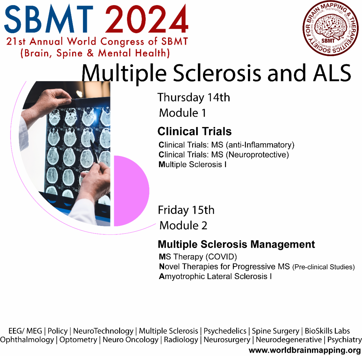 The MS, ALS and Glaucoma SBMT Subcommittee, focuses on research on Multiple Sclerosis, Amyotrophic Lateral Sclerosis and the Glaucoma associated to it. Novel Diagnostic, therapeutics and management of these diseases.
