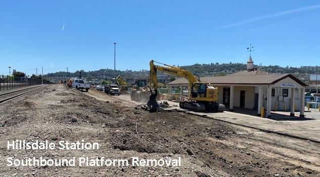 The project found several components could move forward, including the building and "cut over" of the new elevated rail alignment. This work--originally scheduled for night and weekends--can now move forward during the day. Current circumstances also allowed for the accelerated removal of the southbound station platform (above picture). All trains are still servicing the station via the northbound platform.
