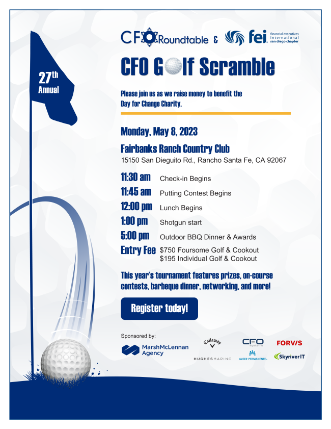 Please join us as we tee off for a cause at the 27th Annual CFO Golf Scramble May 8, 2023