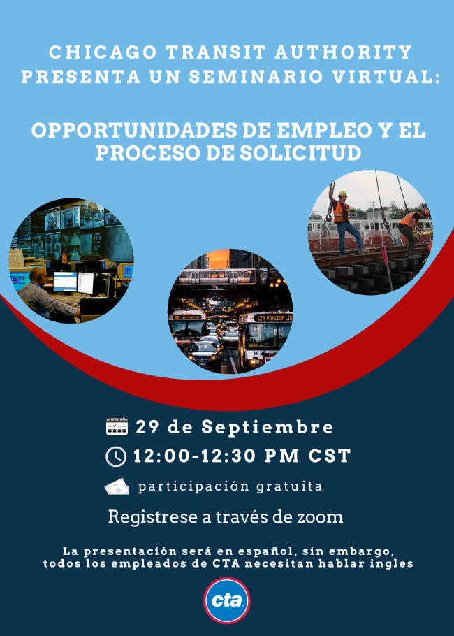 This webinar presentation will be facilitated in Spanish, but all CTA employees must be fluent in English. This online event is open to the public. To learn about CTA career opportunities and the application process