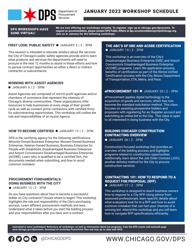 The Chicago Department of Business Affairs & Consumer Protection, Department of Public Health, and the Department of Buildings will provide insight on how operate a compliant business in the City of Chicago. Topics covered will include how to prepare for inspections, building permits and sign display requirements, food inspection overview and necessary certificates, and zoning review procedures. Learn how to operate safely and avoid common setbacks.