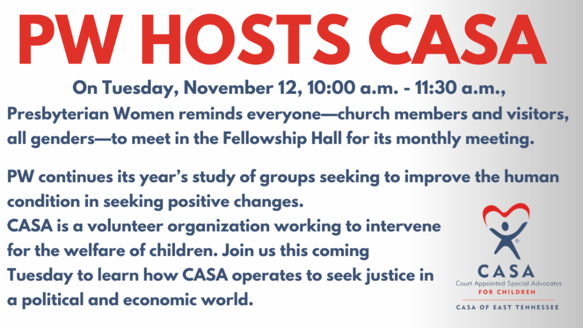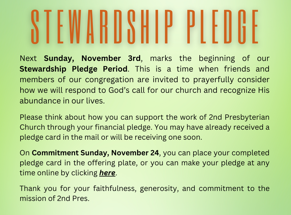 Please get in touch with the Church Office with prayer concerns to be listed in the weekly email or bulletin (mvillalta@2ndpres.org, 865.523.2189)