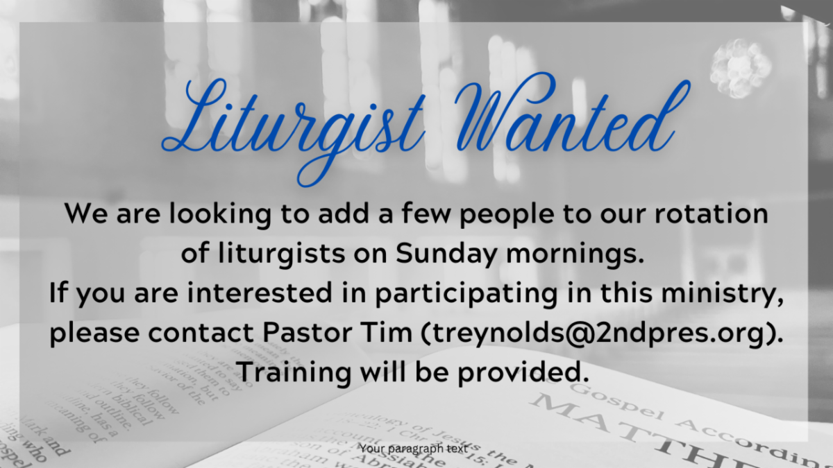 Please get in touch with the Church Office with prayer concerns to be listed in the weekly email or bulletin (mvillalta@2ndpres.org, 865.523.2189)
