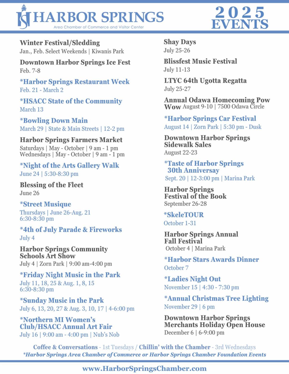Membership in the Harbor Springs Area Chamber is open to all businesses, organizations, and individuals. Information presented in the chamber newsletter does not necessarily reflect the views or opinions of the chamber or its membership. It is provided here as information only, as submitted by member businesses and organizations. Chamber member benefits | Member application | Call 231-526-7999.