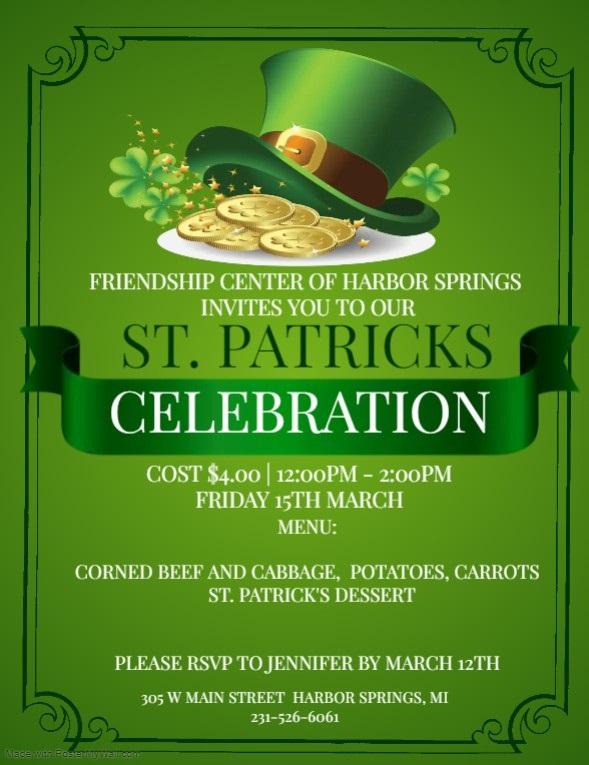 St. Patrick's Day specials and events (Send yours to jim@harborspringschamber.com)