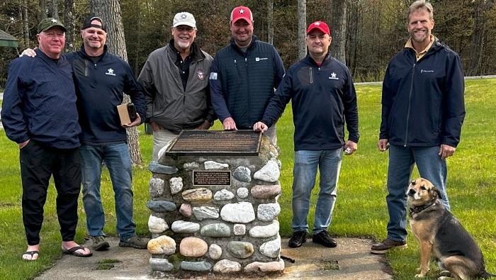 Part of the motivation for Team Honor’s founding was the need to support Gold Star families as evidenced by the life of Heath Robinson. Each year as we prepare for the Zoo-de-Mack ride we visit the memorial (pictured above) to Heath at the Cut River Bridge. Wearing the tan baseball cap is Captain Richard Phillips, who was rescued from Somali Pirates by Navy SEALs like Heath Robinson. Captain Phillips will be playing in Team Honor’s golf tournament again this year. | |