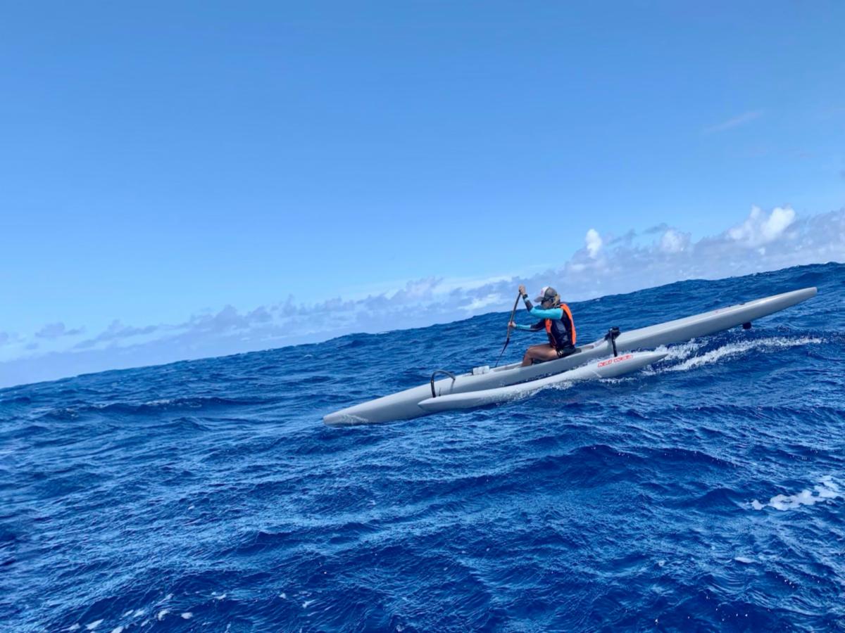 This amazing boat is designed by Kai Bartlett founder of Kai Wa'a Canoes. This is the Pro model and weights in at 13lbs. I've named it OBAKE. Japanese for "grey ghost" which is translated as always transforming. I'm hooked. Photo by Jeremy Riggs.