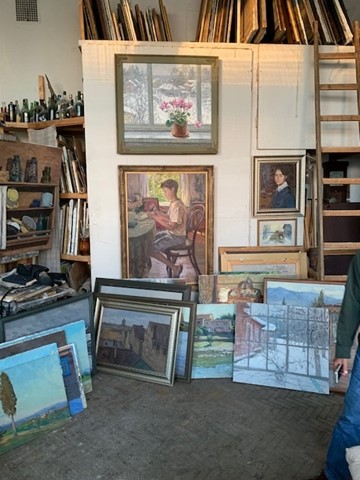 For example, the downstairs studio neighbor of my grandfather was the famous artist Arkady Plastov. In my time the son of Arkady Plastov, Nikolay and his wife Elena Kholodilina worked there. My Grandfather and Plastov were friends and often arranged joint dinners. It was like this: at lunchtime, a conditioned signal - a knock on the heating pipe- and then my grandfather, parents and I, of course, went down a floor below and had dinner. When it was my Grandfather's turn to prepare dinner, he told me to knock on the heating radiator with a wrench. Ten minutes later, the Plastovs arrived and we all dined in his studio. During meals, there were discussions of each other's paintings, upcoming and past exhibitions... endless interesting stories were told, enough for a separate book.