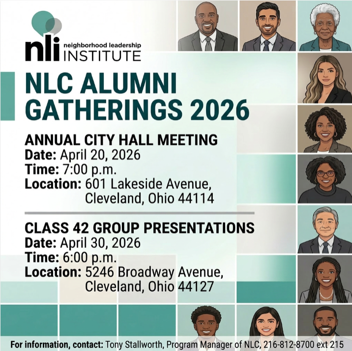 NLI invites the alumni of Neighborhood Leadership Cleveland (NLC) to join us for two of our premier annual events, each designed to strengthen civic engagement, community leadership, and collaborative impact across the City of Cleveland.