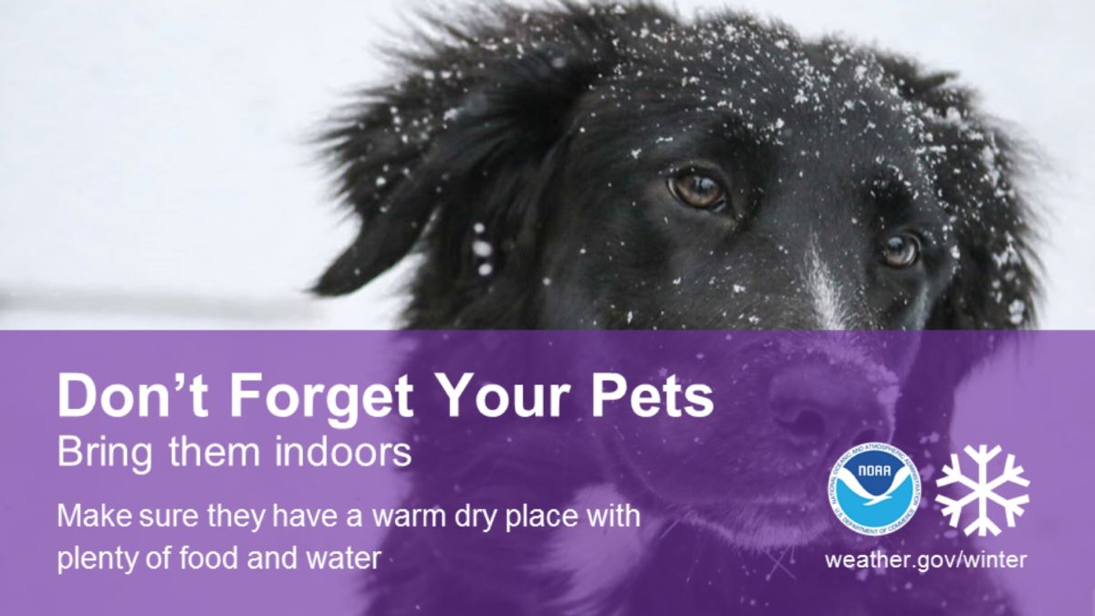 - Don’t forget your pets; bring them inside during bitter cold and numbing wetness to stay safe and warm.