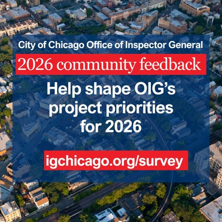 Community feedback helps OIG prioritize projects for the coming year to align with what is of most concern and importance to all Chicagoans. OIG invites you to explore both draft plans and encourages you to provide your feedback by taking the community feedback survey at igchicago.org/survey.