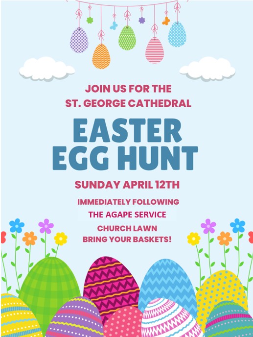 PASCHA EGGS – The Anagennesis Ladies are asking for individuals to donate one or two dozen red, cooked eggs for Pascha. Eggs should be delivered to the Church during Holy Week, Holy Monday, April 6th through Holy Saturday, April 11th between 9am and 4pm. Your response to this appeal is greatly appreciated.