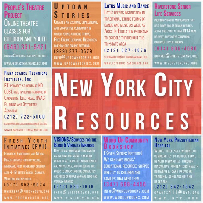 - Donación de suministros : durante este tiempo, los servicios de salud de Nueva York han experimentado una escasez de suministros. Si usted es un negocio local que desea apoyar el esfuerzo de respuesta de emergencia COVID-19, no dude en compartir este enlace AQUI.