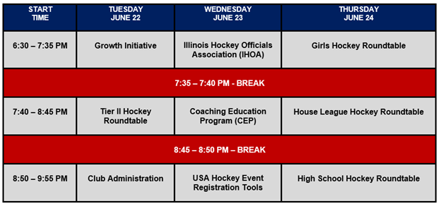 The conference is designed to educate Affiliate Leaders and allow AHAI to hear from our members on a variety of topics which include girls hockey development, growth and communication initiatives, rules and ethics issues, referee retention, coaching education, Tier II and House League Hockey in Illinois among other topics. The Zoom sessions are open to any Affiliate leader, staff, or coach. Presenters will include AHAI Committee Chairs, Chicago Blackhawks staff, and USA Hockey Staff. We hope you will attend and benefit from the discussions. It is up to all of us to help grow hockey in Illinois and create the best, safest, and most fun environment for our skaters.