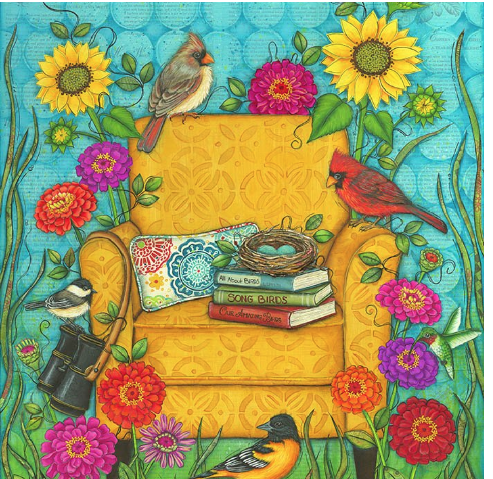 Mixed Media - Lisa Keys from Travelers Rest, SC. Mixed media paintings using acrylic paint, ink, papers & book text on wood panels. Lisa mostly paints animals and vintage items using a combination of painting directly on the canvas and smaller details like flowers are painted on dictionary paper then collaged on the panel to create depth and texture.