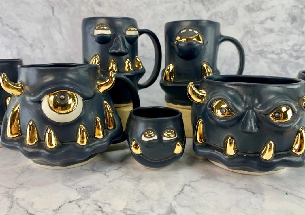 Ceramics - Zack Callaghan & Lisa Tantillo from Atlanta, GA. Wheel-thrown and altered monster themed functional ware in stoneware and porcelain, glazed with home-mixed glazes (recipes from author John Britt's Guide to Mid-Range Glazes) fired Raku and cone 6 oxidation, exploring the human psyche through playful examination of our inner demons.
